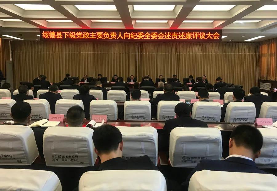 3月3日,绥德县召开下级党政主要负责人向纪委全委会述责述廉评议大会。县委常委、纪委书记、监委代主任苏强出席会议并讲话,县纪委副书记、监委副主任刘捷主持会议。县纪委委员,各镇纪委书记,各派驻纪检监察组组长,县纪委监委机关、县委巡察办(组)全体干部参加。